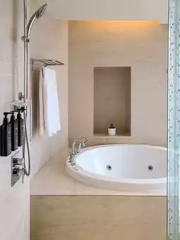 I spent most of my time on the sofa in the living room, but drinking on the terrace with an ocean view was also great! The bathtub in this room also had an ocean view.