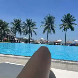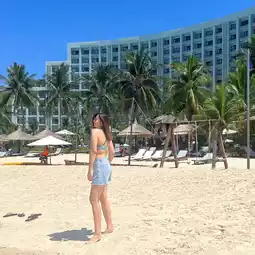 Whether it's staying at a 6-star hotel 🌟 on the island and having a private beach 🏖️ at "Vinpearl resort & spa hotel" 🏨 here, there is a very large swimming pool 🏊🏻♀️🏄🏻♀️ sunbathing 🌞👙🕶️ enjoying the sea view.