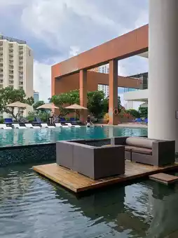The infinity pool is not too crowded and is comfortable, probably because many people are playing on the beach in front of it.