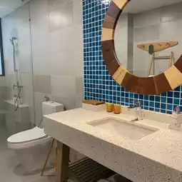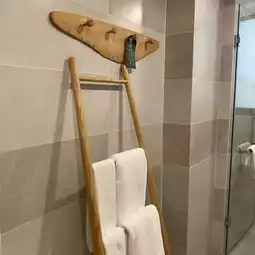 Each room has a terrace and a drying rack, a desk where you can work on your laptop, and a very spacious bathroom