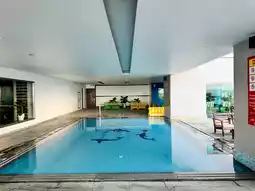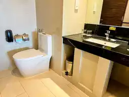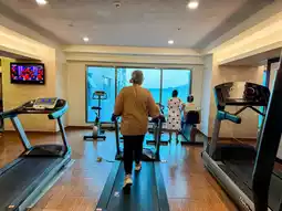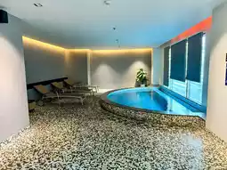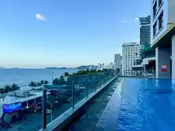 The common area is on the 5th floor, with a separate swimming pool for children, fitness center, and sauna for men and women. However, the rooftop bar costs an additional 200,000 VND per person, which can be exchanged for drinks upstairs