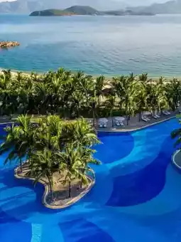 Experience island luxury at Vinpearl Resort & Spa Nha Trang Bay. With Deluxe Ocean View rooms, private beaches, and complimentary island transport, it's an all-inclusive haven. Enjoy the spa, water sports, and the free first-day minibar! 🍹🏝️