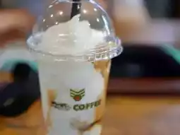 A cup filled with sweet treats Coconut cream and sweet-bitter coffee combine for a delicious, highly recommended coconut coffee!
