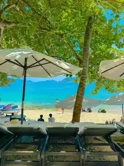 The emerald water is so pretty, and lying on the bed while looking at the sea is so healing🫶