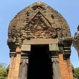 What you will find: The stone castle is built of red bricks and sandstone. It has beautiful carvings in the style of Cham art.