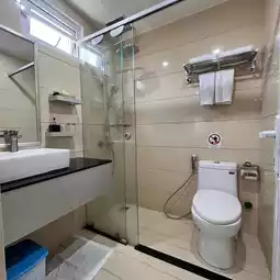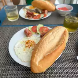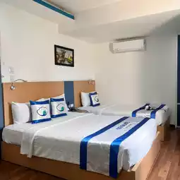The hotel on the first night was...\ Breakfast included for around 900 yen per person 🥣 /They didn't have a breakfast buffet as there weren't many people staying there, but you could choose pho or banh mi and have all-you-can-eat fruit which was delicious and more than enough ♡ The view from the rooftop pool was also good! The room was clean and the marine colours were cute!! In addition to the desk with a mirror, there was also a movable mini desk, so it was perfect for traveling in a space where you could relax like you were in your own room ◎ Of course, there was also hot water in the shower ♨️ ー ー ー ー ー ー ー ー ー ー 📍Blue Pearl hotel Nha Trang 1 night for 2 people from 1,800 yen including breakfast ⚠️ The free water in the room is a small bottle. The bottle in the blue packaging next to it is chargeable lol [Hotel amenities] Hair dryer, hair cap, sandals Ear pick, toothbrush, towel, hanger Shampoo, body soap, refrigerator Beach towels can be rented and returned at the front desk -- ...