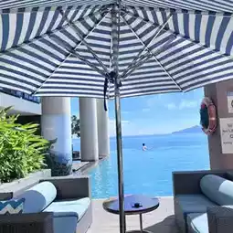 Atmosphere/Facilities: As one of the few 5-star hotels in Nha Trang city center, the lobby is large and clean. It is a hotel where a doorman always opens and closes the door. I think the infinity pool is the main attraction here. It is so cool. The blue Sprite interior gives off a Pocari Sweat vibe. When you look at it from the front, it seems connected to the sea, so you can take a great photo. It is a feast for the eyes with the optical illusion that the sky, sea, and pool are all connected.