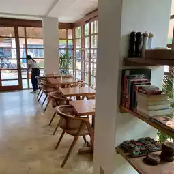 This place is very cozy to meet friends or just having breakfast or brunch. Their breakfast is served all day, so you can order french toast at night. It's super delicious french toast. Soft and moist toast is served with banana flambe, fresh strawberry, maple syrup and topped with edible flower and icing sugar.