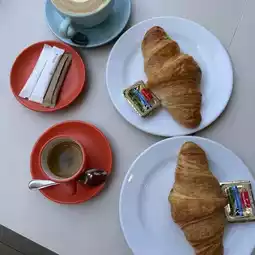 Great place to sit, the cappuccino i was served was cold and the taste was very mild. Service was slow, I don't blame them they must have been working all day. All the staff where friendly. Food was alright. The prices could have been better.
