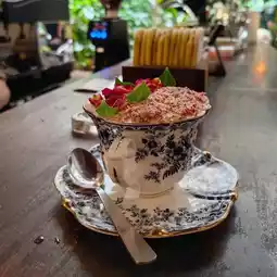 Tried the famous souffle yesterday haha its really nice and delicious haha the souffle really pretty. Tried the matcha one. Place not that big but for sure this place is quite famous as many people come here and even queue.