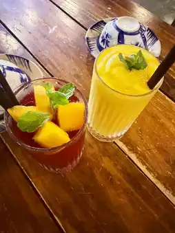 We ordered 3-4 dishes for two people and even delicious fresh fruit drinks, the most expensive one was about 22,000 wonㅎ