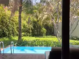 It is a pool villa with 3 bedrooms, 4 bathrooms, and a pool. It was too big for 5 people.