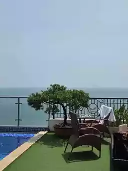 The pool is small, but you can see the sea view, and the location is close to the beach.