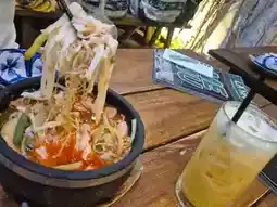 After a mud spa session, I was hungry and decided to use the free meal voucher at this restaurant. The free meal options were quite basic. It’s okay to eat if you’re hungry, but nothing special. The burger we paid for was decent.