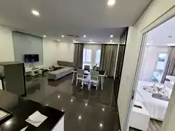 There is also a living room. The spacious floor and the view are great. And you can use all 3 swimming pools.
