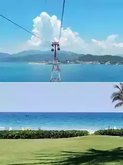 Over-sea cable car → Alpine coaster → Hurricane slide → Sunset Ferris wheel → Sea fireworks