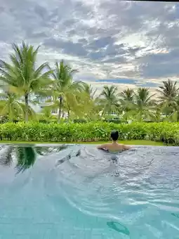 If you visit Nha Trang, a famous resort, you will definitely go swimming. I visited many hotels with swimming pools, so I will recommend two. First, on the first day, I recommend the Regalia Gold Hotel, which has a swimming pool on the rooftop.