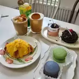 🍰 When we arrived at this cafe, the first thing that caught our eye wasn't the cakes or the drink menu, but the lovely, spacious interior. The atmosphere was incredibly warm. The interior was chic, and there were plenty of photo opportunities everywhere. The cafe has several rooms, complete with trees, flowers, tables, and beautifully executed decorations. 🥰🥰 This cafe offers a wide variety of cakes, including birthday cakes, sliced cakes, croissants, and macarons. And, most importantly, the prices were very reasonable. 😆😆 We ordered several cakes, each with a different flavor. Overall, I thought the cakes were okay. Some were worth trying, while others were not. Although there are many varieties, there are three main flavors: chocolate, matcha cheese, and salted egg. The first was the croissant with salted egg sauce. I think everyone who visits here should try it. The cake was slightly crispy and had a fragrant salted egg flavor. The salted egg sauce was delicious, with a distinct salty-sweet flavor. The second was the macarons, which weren't overly sweet. The outside was very crispy, and the inside was perfectly soft. The butter cream filling was rich and not too sweet. The third was the Black Forest tart, which was delicious. The tart was crispy, but still had a nice soft texture. For us, it was rich with chocolate and the cream was just the right amount of sweet. The fourth was the cherry mousse, which is practically a Black Forest version of mousse. It was topped with cherry sauce, cherry cream, and layers of rich chocolate cake. It was a perfect match, but it felt a bit too overly sweet. There were also fresh cherries on top. 🍰👍🏻 Overall, this place is a must-visit for cake lovers and photography enthusiasts, as the selection of cakes was so diverse and beautifully decorated. I was amazed when I glanced at the cake display case, as the cakes were beautiful and the prices were not too high. You can also buy cakes for the holidays.