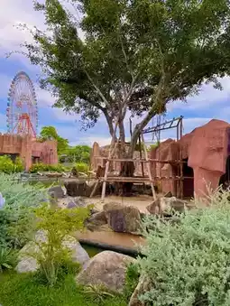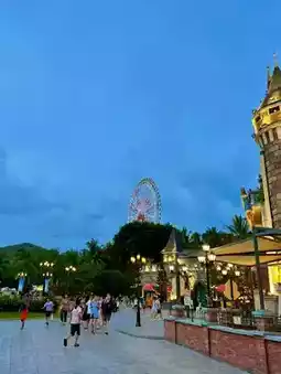 Inside the park, you'll find various themed zones such as the Adventure Zone, Water Park, Aquarium, and King's Garden (a mini safari), offering entertainment for the entire day. Especially at night, the Sky Wheel lights up beautifully, creating a romantic atmosphere ✨. It's perfect for a family outing or a date with your significant other.