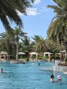 The Mövenpick Resort pool sparkles under the Nha Trang sunshine, a veritable paradise. The azure sky and emerald sea meet at the edge of the pool, creating an infinity view 🌊. Submerging in the water, the gentle waves and cool breeze melt away the day's fatigue. The Mövenpick Resort pool is also a popular destination for families—kids can enjoy the kiddie pool, while adults can relax on the sunbeds 🏝️. In the afternoon, the sunlight sparkles across the water, casting a golden glow, making it a perfect photo spot 📸. The ocean-facing view makes you feel as if you're floating between sky and sea. A refreshing drink at the poolside bar is the perfect summer 🍹. At night, the lights turn on, creating a romantic atmosphere. The Mövenpick Resort pool changes with each passing hour, making your travel memories even more sparkling.