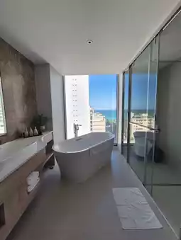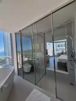 The bathroom featured a glass-enclosed shower booth, which was clean and had good water pressure. Amenities were well-stocked, and the cleanliness was impeccable.