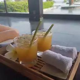 I was amazed by the ocean view from the lobby, and they provided a welcome drink, which was surprisingly made of straws. The taste of the drink was average, but I was satisfied with the special service.