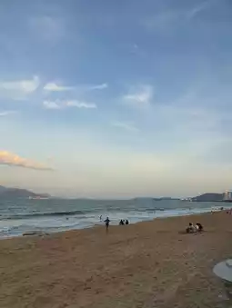 🌊 Nha Trang Beach, a beach stretching for several kilometers in Nha Trang. People come out to relax in the morning and evening to do activities such as exercising and relaxing with their families. There are food for sale from locals along the way.