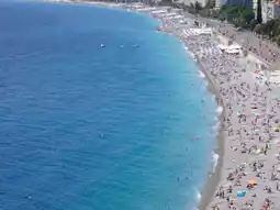 Located on the Côte d'Azur in southern France, Nice is a charming resort town, characterized by the beautiful contrast between the blue Mediterranean sea and its orange rooftops.