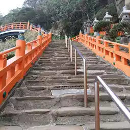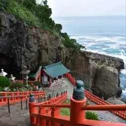 It is said that it was founded during the reign of the 10th Emperor Sujin, but the exact date is unknown. While looking out over the Hyuga Nada Sea, you can go down the steep stairs to the bottom of the cliff. The main shrine is in a cave beyond that. Although the road is now well-maintained, it flourished as a Shugendo sect, and you can feel the harsh environment it was in. We recommend visiting while your legs are still strong.