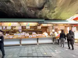 A highlight was the famous undama (lucky stones)—small pebbles you toss into a narrow hole carved below the cave shrine. If it enters, your wish comes true! Watching each family member give it a try was full of joyful suspense—heads tilted, arms extended, kids cheering, and fingers crossed.