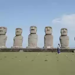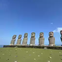 The scene of seven Moai statues lined up with their backs facing the sea is full of historical romance and mystery😱🥹