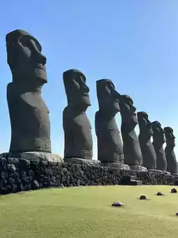 The seven Moai statues, from right to left, are said to bring good luck in academic achievement, good luck in money, and good luck in marriage.
