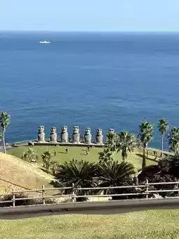 The sea and the Moai statues The only complete reproduction in the world Easter