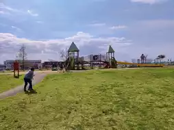 There are lots of play equipment and it's fun. There are swings, horizontal bars, loungers, jungle gyms, Tarzan ropes, sandpits, etc. There is also play equipment for small children, and two clean restrooms. In the summer, children will want to play in the water, so it would be a good idea to bring a change of clothes.