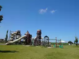 #familytrips2024 The playground area is a nice park where small children can enjoy a day, and the restrooms are clean. The health plaza has many devices that adults can use to self-reflect, so if you're visiting, be sure to give it a try. Great free pedal go-carts, inflated bounce cushions, wire climbing frame and mega play castle with lots of slides and other attachments. Also there's a zip line style circular thing which the kids love! Free toilets, drinking water and drinks machine on site with loads of parking.