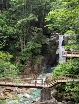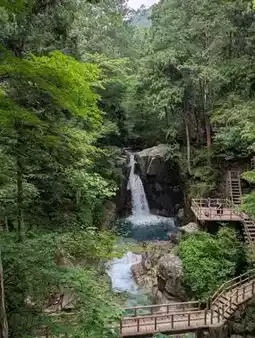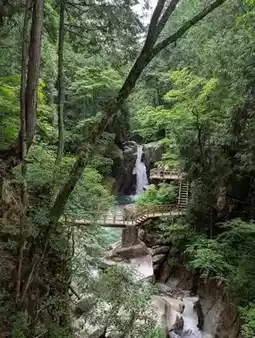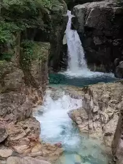 Nakasuya Falls seems like nature's soulful brushstroke, painting a symphony of water amidst the mountain cliffs. The waterfall cascades down like white silk from a great height, majestic yet graceful, resembling a dancing fairy that showcases the primal rhythm of life in the mountain stream.