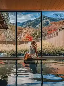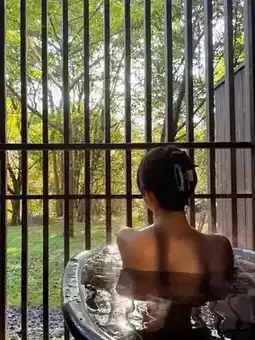 Indoor bath: The large floor-to-ceiling windows make soaking in the hot spring no longer monotonous, and the beautiful scenery outside the window is always there