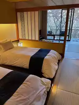 One of the hot spring hotels under the Hoshino Group, built on a hill facing the Kinugawa stream, you need to take a glass cable car to enter the hotel when you check in, instantly full of non-daily vacation feeling🙋