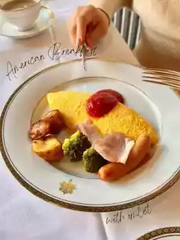 The fluffy omelettes and freshly baked bread are delicious♡