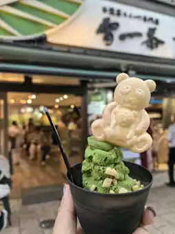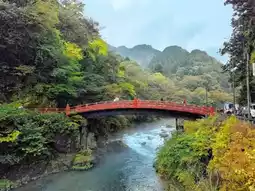 Futarasan Shrine was less impressive, with the main attraction being a large golden rabbit. After leaving Futarasan, I took a bus two stops back to Shinkyo Bridge. For lunch, I dined at Myogetsubo, a restaurant with a unique Japanese garden near the bridge, where the steak was delicious. I returned to Asakusa on the Tobu Limited Express. With some time before my evening flight, I searched for a highly-rated matcha specialty shop called Reicha and tried their signature rich matcha ice cream, which came with a cute little bear on top. The matcha flavor was rich and aromatic. My three-day, two-night trip to Nikko has come to an end. I hope to return when the autumn leaves are at their peak.