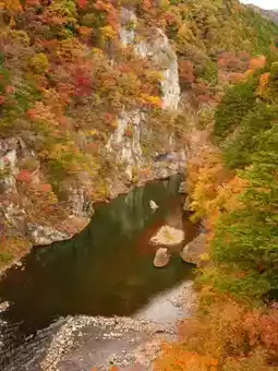 In particular, the views from the riverside promenade and Kinutateiwa Suspension Bridge are spectacular and photogenic spots.
