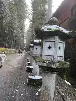 After visiting Tokyo, Fuji, and Nikko, I'll find time to visit Mt. Kunou. The connection of historical stories also makes the journey more interesting to recall. Walking back to the station, it was getting dark, and the mountains in the distance presented a beautiful scenery like ink-splashed mountains and rivers due to the snowfall.