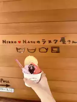 Nasu's rusk shop - An ice cream and rusk shop that randomly puts chocolates of the three monkeys on your ice cream. 650 yen