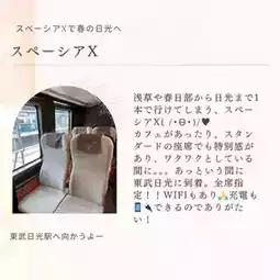 If you use Spacia, you can get from Asakusa to Tobu Nikko Station in less than 2 hours (/•ө•)/ All seats are reserved, and the price is the ticket + reserved seat, so if you have a standard seat, you can get from Asakusa to Tobu Nikko for less than 3,000 yen one way.