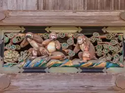 - **Famous carvings**: The "Three Wise Monkeys" (hear no/speak no/see no evil) and a sleeping cat (*nemuri-neko*).