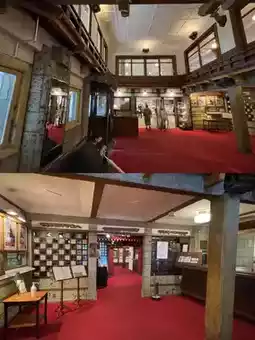 While the interior is Western-style, the ceiling features intricate details reminiscent of shrines.