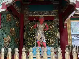 Yashamon Gate, also known as "Botanmon" (Peony Gate), is the third gate and one of the highlights of Taiyū-in Mausoleum, the mausoleum of Shogun Tokugawa Iemitsu. 🏯 Located on a hillside surrounded by lush cedar forests, 🌲 it exudes a sense of peace and sacredness. The atmosphere around the gate is quieter than that of Toshogu Shrine, offering a sense of escape. 🙏 The gate itself is beautifully decorated with vibrant colors and intricate carvings. Especially the intricate peony and arabesque patterns. 🥀✨ While not as ornate as Toshogu's Yomeimon Gate, Yashamon is captivating with its elegance and balance of Buddhist and Shinto art. 😌 However, English information boards are limited, and during peak season, it can be crowded with tourists, making it a bit difficult to appreciate the details. 🙈