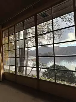 The window offers a spectacular view of Lake Chuzenji and Mount Nantai, a truly picturesque landscape!