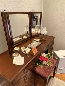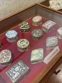 The beautifully patterned trinket boxes, tableware, and sofas are all so luxurious, it's fun to imagine what life was like back then.
