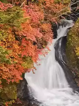 Tochigi Prefecture's Ryuzu Falls is a captivating spot, known for its unique dragon-head shape and spectacular views during the autumn foliage season. ✨